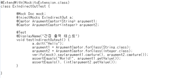 - 이를 위해 간접 출력이 올바르게 이루어졌는가를 테스트(호출 횟수 및 인자의 전달)
