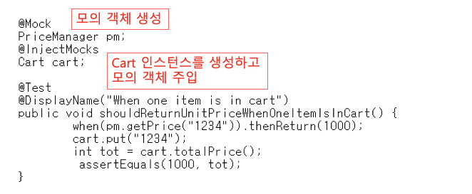 모의 객체 생성 및 모의 객체 동작 지정(Stubbing)